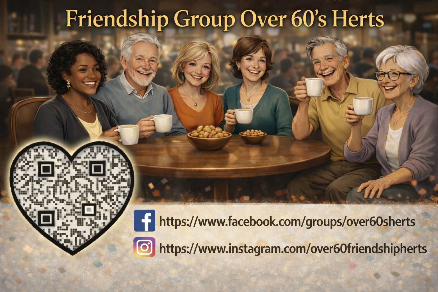 Casual gatherings to chat, laugh, and build friendships at local venues.